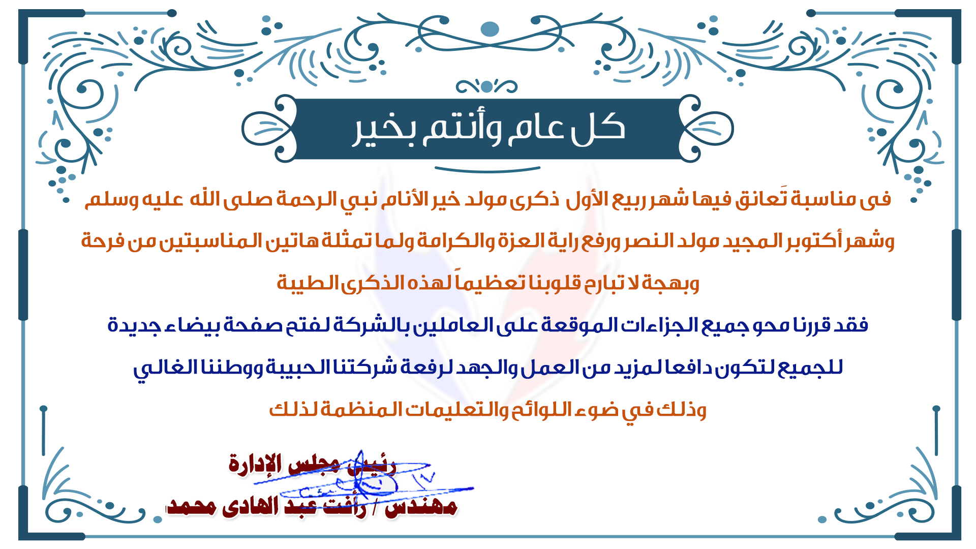 قرار السيد المهندس / رأفت عبد الهادى محمد رئيس مجلس الإدارة بمحو جميع جزاءات العاملين